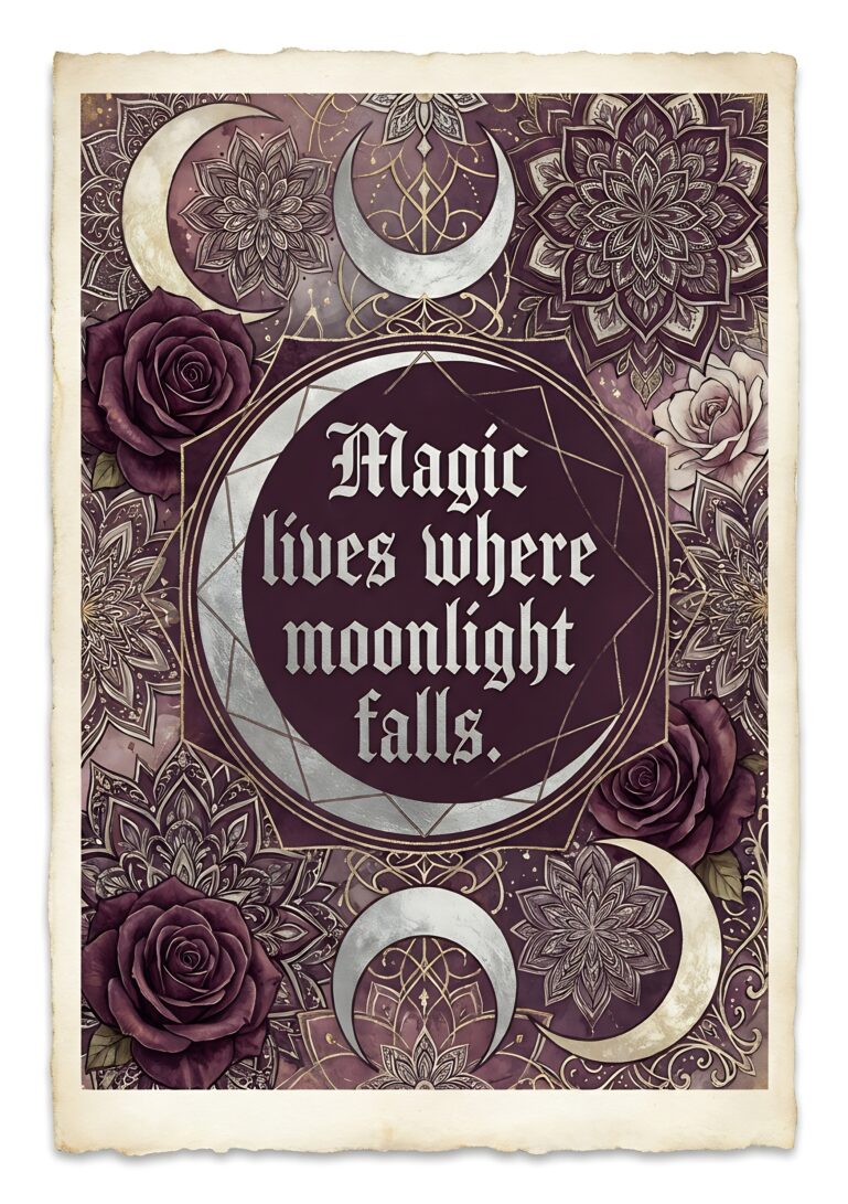 Step into an enchanting realm where autumn’s magic meets celestial mystery with this Whimsigoth Celestial rolled poster. Imagine the soft glow of a harvest moon illuminating a secret garden where whimsical vines embrace mystical symbols, creating a captivating focal point that transforms any room into a sanctuary of darkly romantic beauty. This piece captures the essence of whimsigoth style—where gothic elegance dances with bohemian freedom under a celestial sky.