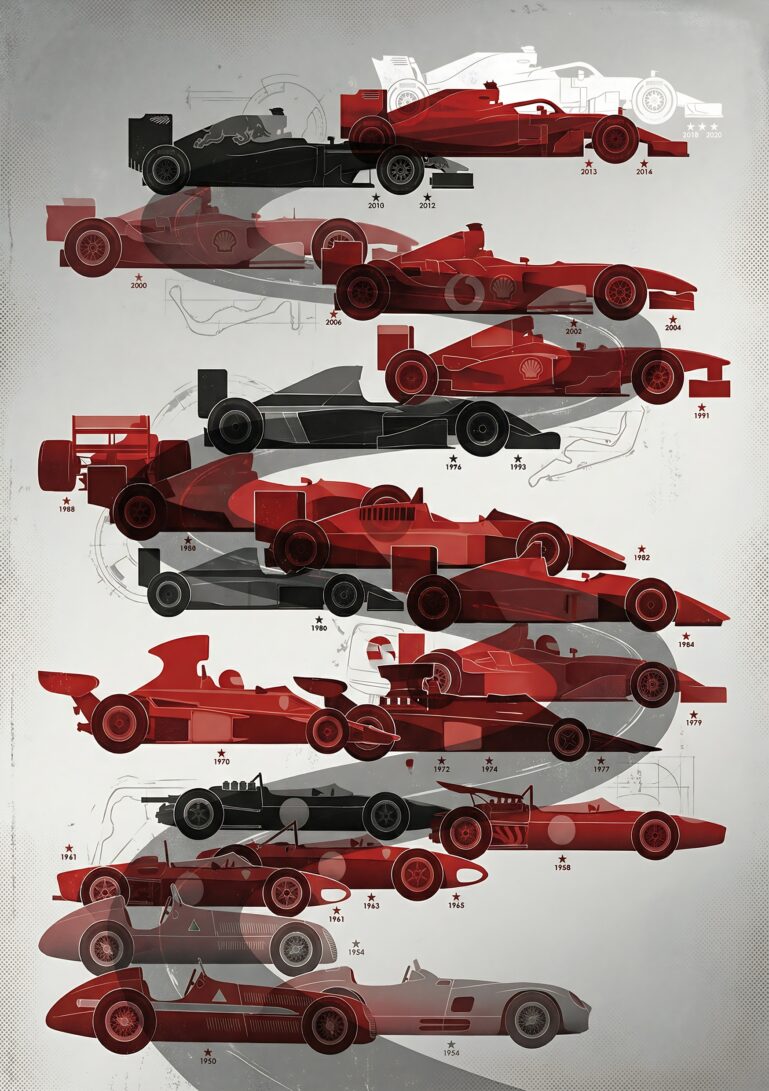 The ‘Decades of Dominance’ design honors the relentless pursuit of victory that defines Formula 1. It’s more than just a canvas print—it’s a tribute to engineering marvels, legendary drivers, and moments that shaped racing history. This piece evokes the adrenaline of race day, the precision of pit stops, and the glory of championship wins, making it perfect for anyone who lives for speed and competition.