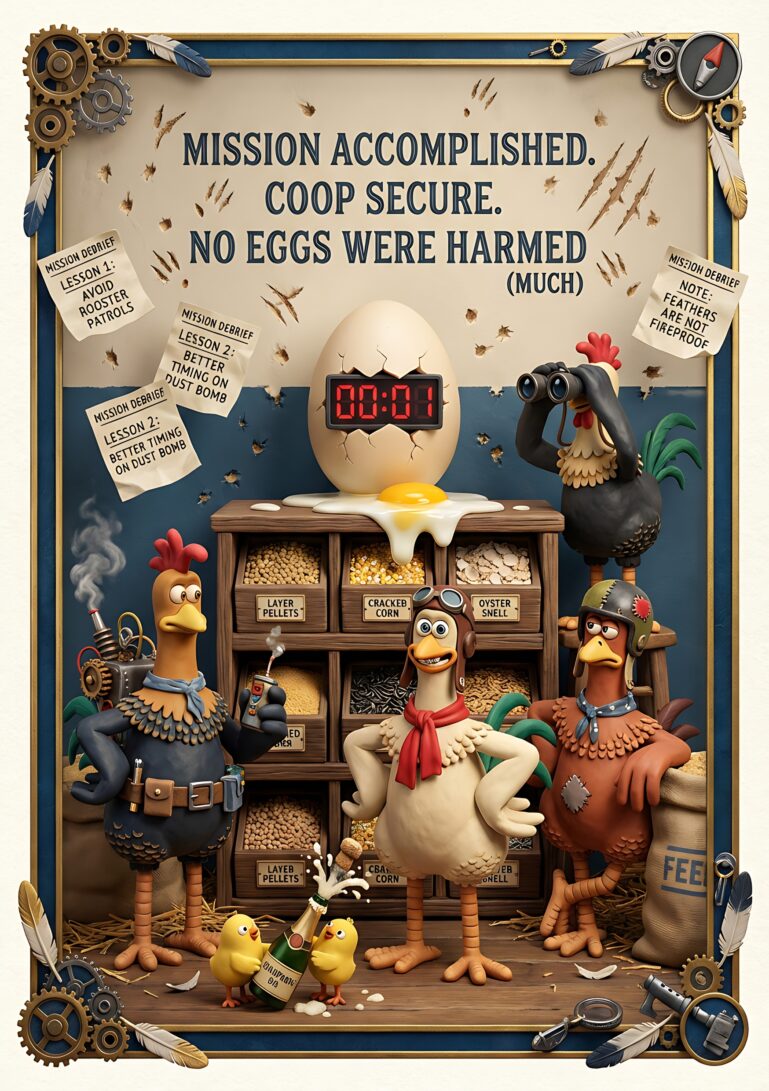 Imagine the quiet satisfaction of a goal achieved, a plan perfectly executed. This ‘Mission Accomplished. Coop Secure.’ framed canvas print captures that profound feeling of mission success, transforming it into a striking visual statement for your space. The bold declaration is a daily reminder of capability and completion, perfect for celebrating personal or professional victories.