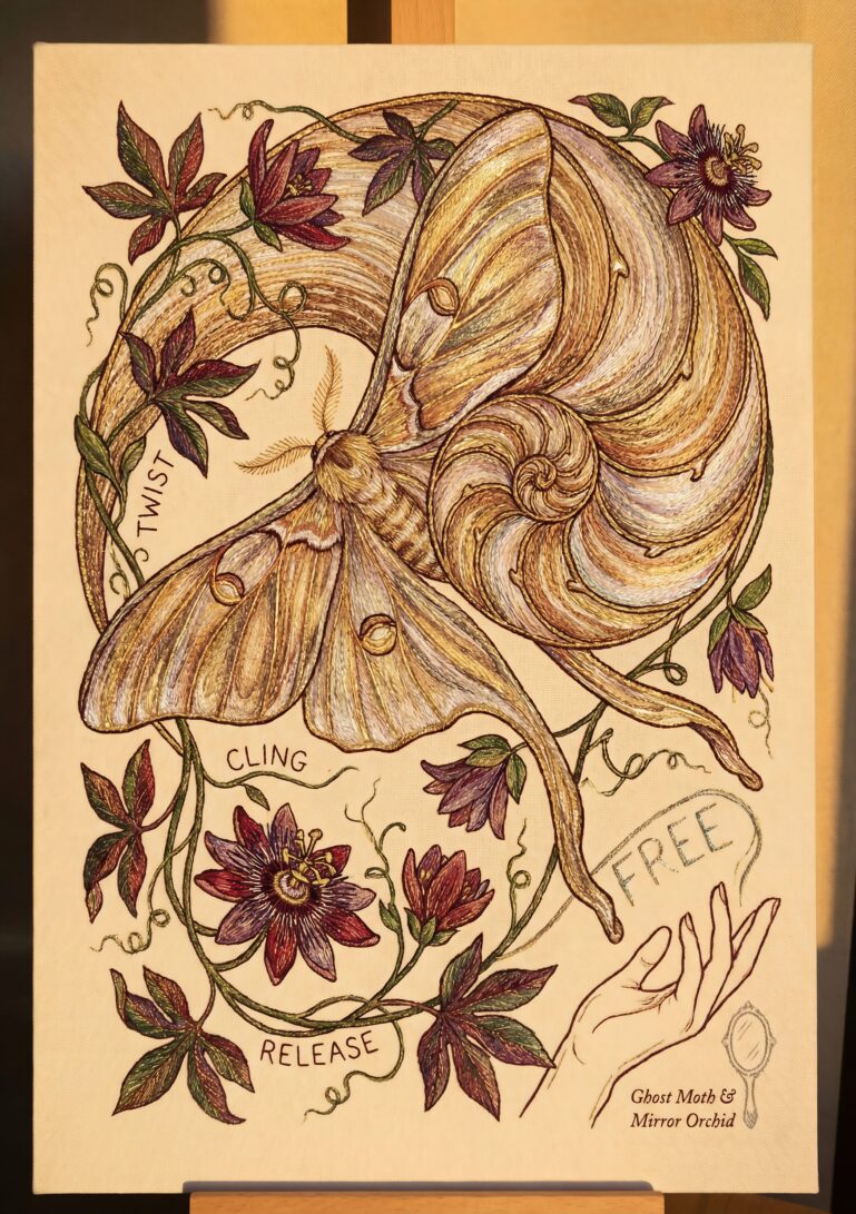 The artwork speaks of a quiet, powerful alchemy—where yearning is not a burden but the very material for flight. It captures that moment when introspection blooms into something beautiful and strong. This piece is for those who find beauty in the melancholic, strength in the subtle, and poetry in the petals. It’s a tribute to turning inner landscapes into outward grace, making it a profoundly personal addition to any room.