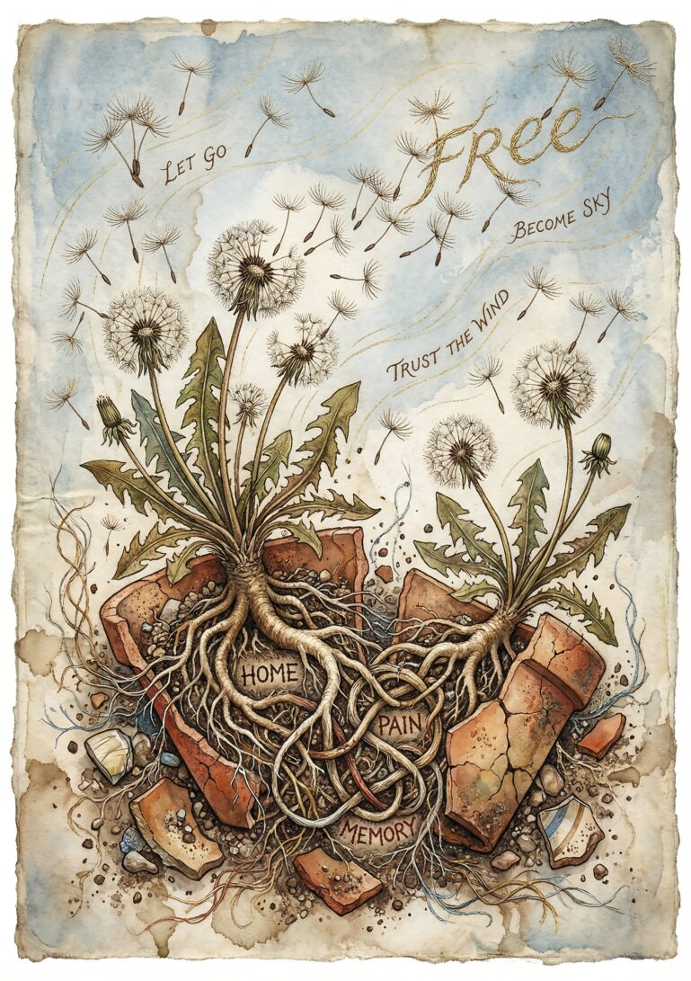 This artwork tells a story of profound personal growth. It’s about the courageous act of shedding the past to embrace a new, more authentic self. The intricate floral roots symbolize history and foundation, while the emerging wings represent freedom and future potential. It’s more than just a picture; it’s a daily reminder of resilience, change, and the beautiful becoming that happens when we dare to transform.