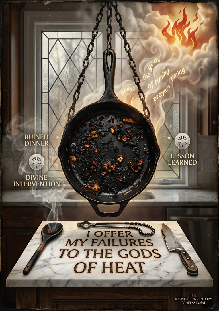This piece tells a story of resilience and humor in domestic life. That pan left on the stove, the slightly-too-crispy sausage inside – they represent attempts, efforts, and the charming imperfections of daily existence. It’s a gentle reminder that not every endeavor needs perfection to have value, and sometimes our ‘failures’ become our most memorable stories. The artwork creates a warm, relatable mood that connects with anyone who’s ever cooked a less-than-perfect meal.