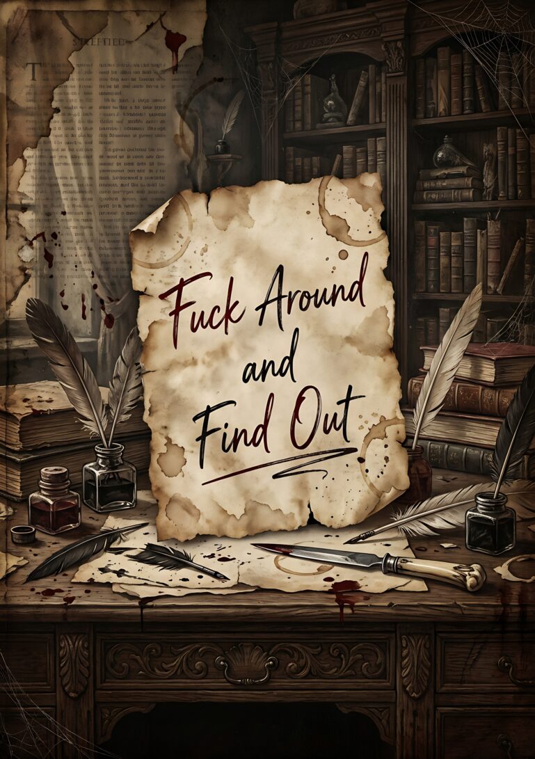 The design tells a story of creative rebellion. It speaks to the beauty found in imperfection, the elegance of a thought caught mid-flow, and the mysterious warning that art itself can convey. This piece is for those who feel the pull of untold stories and the romance of the written word, even in its most chaotic forms. It’s a tribute to the process, the mess, and the magic of bringing ideas to life.