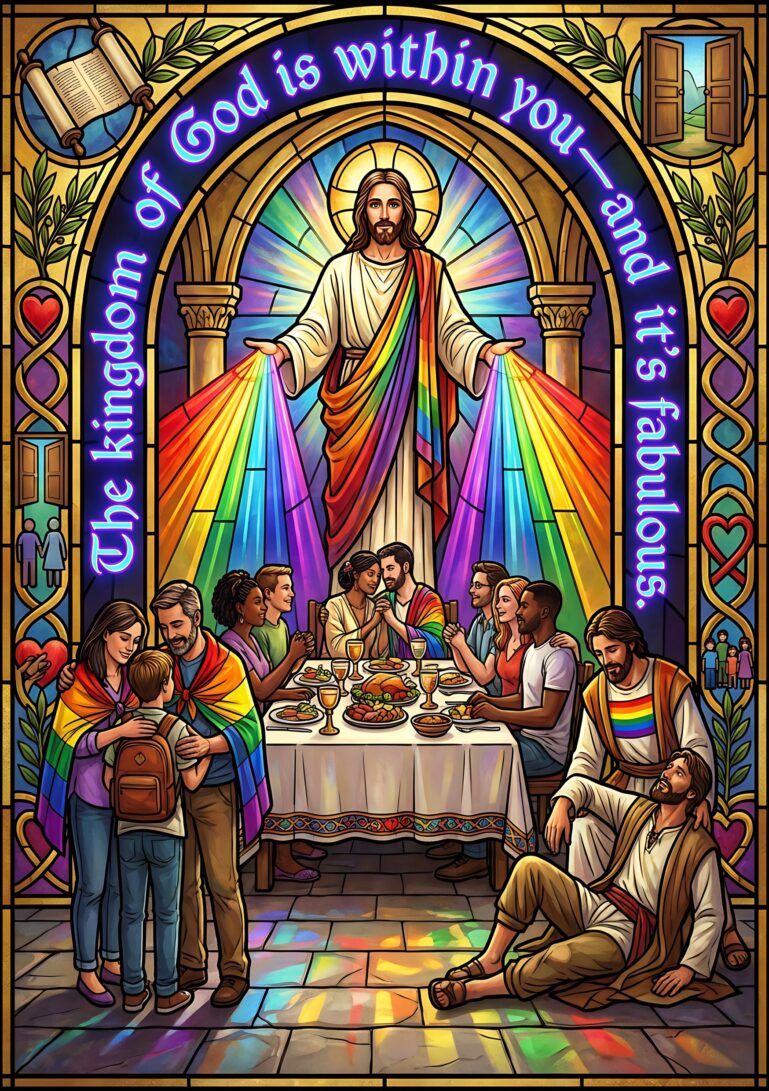 Imagine a vibrant splash of rainbow hope transforming your wall, a daily reminder that a more beautiful, inclusive future isn’t just a promise—it’s a present reality. This ‘The Kingdom Is Already Here And It’s Rainbow’ rolled poster embodies a joyful, inclusive eschatology, celebrating a vision of unity and radiant possibility that arrives not with solemnity, but with brilliant color. It’s more than decor; it’s a statement of faith in a brighter, more connected world, perfect for those who believe in a hopeful and welcoming vision.